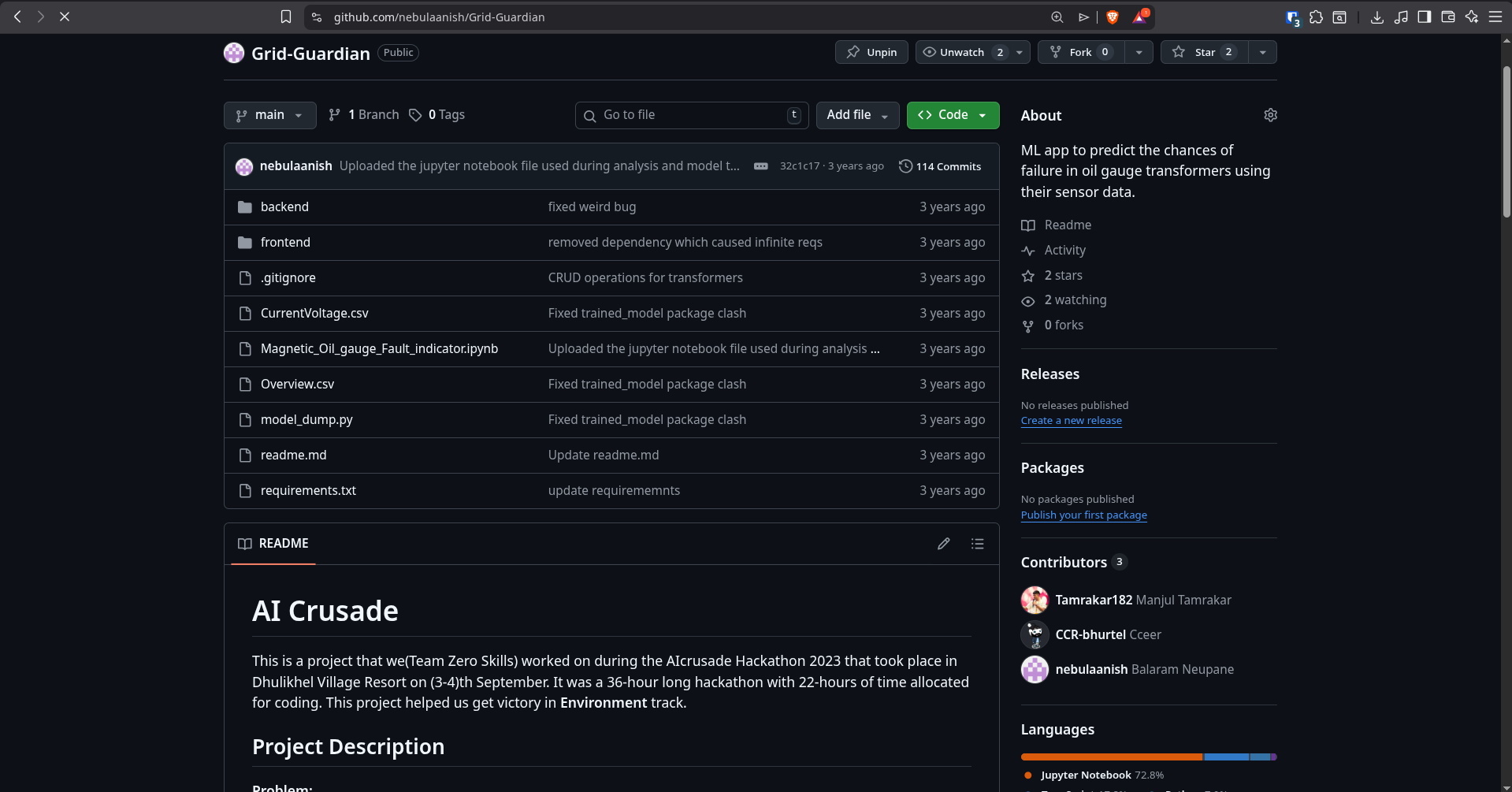 A predictive maintenance system for electrical transformers using oil-gauge sensor data, built with classical ML pipelines and winner of AI Crusade 2023 (Environment Track).